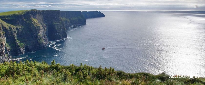 Поездка к Атлантическому океану на утесы Моэр (Cliffs of Moher). Знаменитые ирландские скалы образовались еще за 6 тысяч лет до н.э. Они помнят первых поселенцев, которые появились в этих местах много лет назад — скифов, англичан, шотландцев, датчан. Отсюда прекрасный вид на Атлантический океан с высоты 200 м. На вершине утесов гордо возвышается одинокая каменная башня О ‘Брайана. Она была возведена в 1835 году Корнелиусом О ‘Брайаном, потомком короля Ирландии Бриана Бору, чтобы удивить гостивших у него дам открывающейся со смотровой башни панорамой. Возле скал Моэр снимались некоторые сцены для фильма "Гарри Поттер и принц-полукровка".