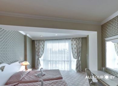 Отель соответствует категории 5* только по внешнему виду. Питание и сервис в отеле следует оценивать, как 3 - 3+ звезды, но и стоимость туров в этот отель соответствующая.